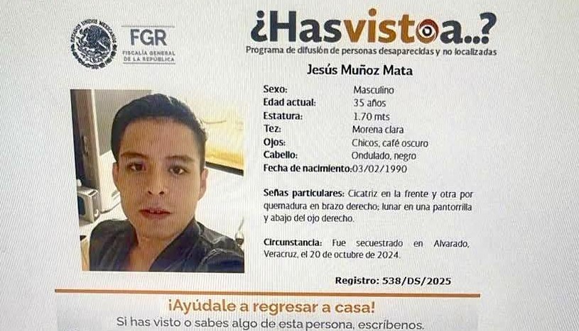 Jesús Muñoz Mata tiene 35 años de edad, es de Alvarado, Veracruz y está desaparecido desde el 20 de octubre de 2024.