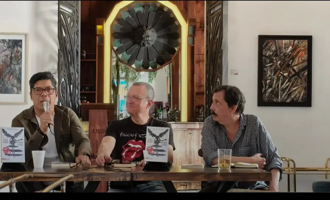 Patricio Ortiz presentó su nueva novela La hija cubana de Mick Jagger en el centro de la ciudad de Oaxaca. El escenario fue el taller de litografía La Máquina, acompañado por Fernando Lobo y Darío Castillejos.