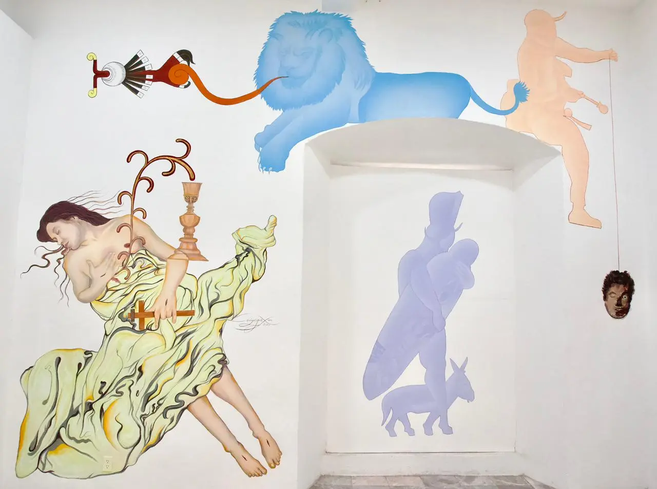 Compuesta por 13 obras de gráfica y una intervención a muro, la exposición es un muestrario de las más de dos décadas que el artista lleva explorando el arte urbano y las artes gráficas, y desarrollando un estilo personal después de haber estudiado Diseño en la Universidad Mesoamericana.