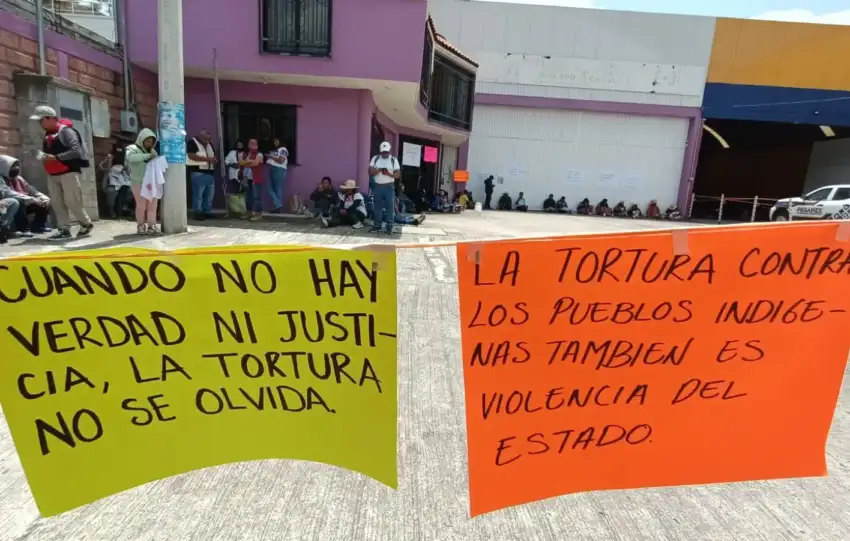 Medio centenar de personas de pueblos ñuu savi y triqui protestaron esta mañana frente al Juzgado de Control del Circuito Judicial de la Mixteca, con sede en Tlaxiaco, para denunciar la posible liberación de dos policías implicados en el caso de tortura de contra del joven Ángel D.
